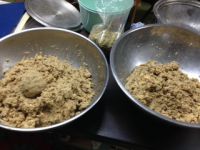 昨日は店番をしながら一人で「玄米麹と米麹の味噌」6kg、「麦麹と米麹の味噌」8kgを作った。 左が麦麹と麹の味噌、右が玄米麹と米麹の味噌。写真では区別がつかない。私自身も今見て分からなかった。 一番上に塩を振って、左のように酒粕で覆った。そしてラップ。 そして活性液の重しと波動効果ねらい。 最後に今回新し... [続きを読む]